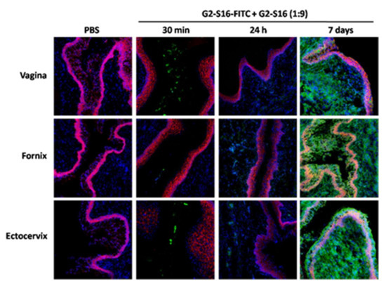 Figure 1), which suggested that G2-S16-FITC dendrimer can cross the vaginal epithelium; however, it is cleared out by the body.