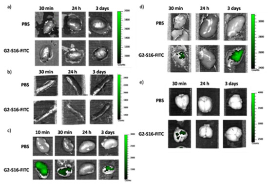 Figure 6b) at any time point, suggesting that the G2-S16 dendrimer does not penetrate into these organs. However, in the case of kidney (