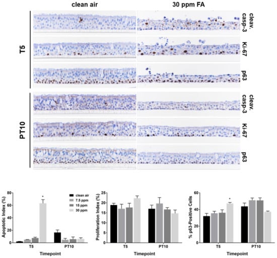 2.3. Effects of FA Fumes on Apoptosis and Proliferation