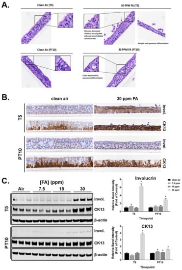 Chicago/Turabian StyleRen, Baiping, Qiangen Wu, Levan Muskhelishvili, Kelly Davis, Yiying Wang, Diego Rua, and Xuefei Cao. 2022. "Evaluating the Sub-Acute Toxicity of Formaldehyde Fumes in an In Vitro Human Airway Epithelial Tissue Model" International Journal of Molecular Sciences 23, no. 5: 2593. https://doi.org/10.3390/ijms23052593