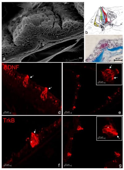 - Uchida, N.; Kanazawa, M.; Suzuki, Y.; Takeda, M. Expression of BDNF and TrkB in mouse taste buds after denervation and in circumvallate papillae during development. Arch. Histol. Cytol. 2003, 66, 17–25. [Google Scholar] [CrossRef] [PubMed][Green Version]