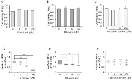APA StyleSasaki-Tanaka, R., Shibata, T., Okamoto, H., Moriyama, M., & Kanda, T. (2022). Favipiravir Inhibits Hepatitis A Virus Infection in Human Hepatocytes. International Journal of Molecular Sciences, 23(5), 2631. https://doi.org/10.3390/ijms23052631