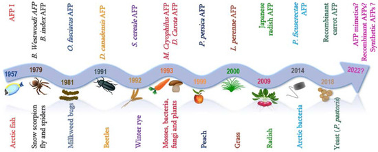 - Baskaran, A.; Kaari, M.; Venugopal, G.; Manikkam, R.; Joseph, J.; Bhaskar, P.V. Anti freeze proteins (Afp): Properties, sources and applications–A review. Int. J. Biol. Macromol. 2021, 189, 292–305. [Google Scholar] [CrossRef]