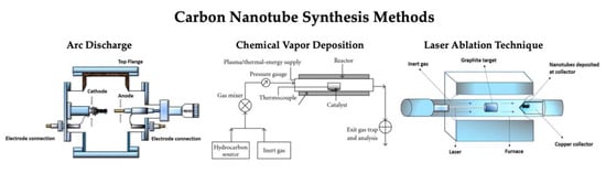 - Wang, X.-D.; Vinodgopal, K.; Dai, G.-P. Synthesis of Carbon Nanotubes by Catalytic Chemical Vapor Deposition. In Perspective of Carbon Nanotubes; IntechOpen: London, UK, 2019; Available online: https://www.intechopen.com/chapters/67867 (accessed on 11 January 2022). [CrossRef] [Green Version]