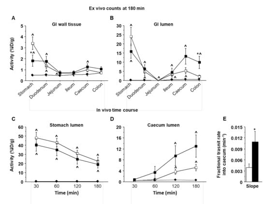 - Yamashita, S.; Takashima, T.; Kataoka, M.; Oh, H.; Sakuma, S.; Takahashi, M.; Suzuki, N.; Hayashinaka, E.; Wada, Y.; Cui, Y.; et al. PET imaging of the gastrointestinal absorption of orally administered drugs in conscious and anesthetized rats. J. Nucl. Med. 2011, 52, 249–256. [Google Scholar] [CrossRef] [PubMed]