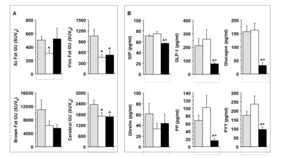 - Dadson, P.; Landini, L.; Helmiö, M.; Hannukainen, J.C.; Immonen, H.; Honka, M.J.; Bucci, M.; Savisto, N.; Soinio, M.; Salminen, P.; et al. Effect of Bariatric Surgery on Adipose Tissue Glucose Metabolism in Different Depots in Patients with or without Type 2 Diabetes. Diabetes Care 2016, 39, 292–299. [Google Scholar] [CrossRef]