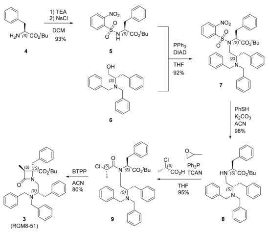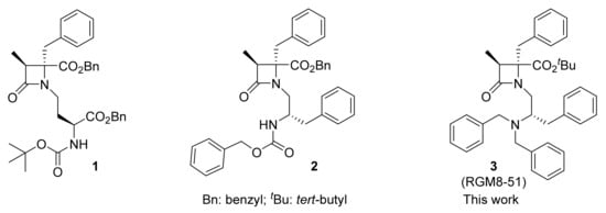 - Perez-Faginas, P.; O’Reilly, F.; O’Byrne, A.; Garcia-Aparicio, C.; Martin-Martinez, M.; Perez de Vega, M.J.; Garcia-Lopez, M.T.; Gonzalez-Muniz, R. Exceptional Stereoselectivity in the Synthesis of 1,3,4-Trisubstituted 4-Carboxy β–Lactam Derivatives from Amino Acids. Org. Lett. 2007, 9, 1593–1596. [Google Scholar] [CrossRef] [PubMed]