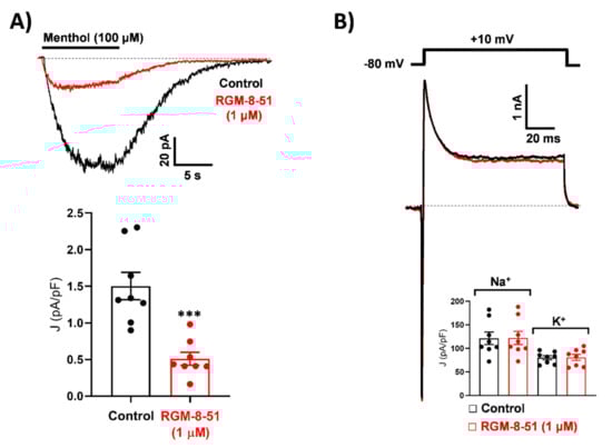 - Diver, M.M.; Cheng, Y.; Julius, D. Structural insights into TRPM8 inhibition and desensitization. Science 2019, 365, 1434–1440. [Google Scholar] [CrossRef]