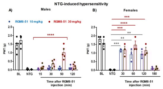 2.4.3. NTG-Induced Mechanical Hypersensitivity