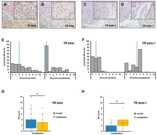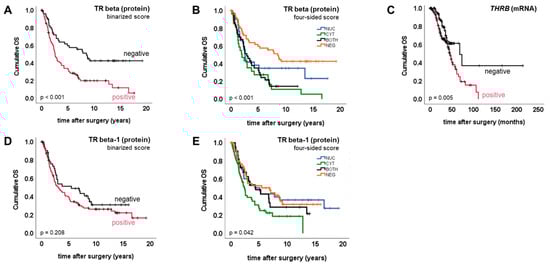 - Ditsch, N.; Heublein, S.; Jeschke, U.; Sattler, C.; Kuhn, C.; Hester, A.; Czogalla, B.; Trillsch, F.; Mahner, S.; Engel, J.; et al. Cytoplasmic versus nuclear THR alpha expression determines survival of ovarian cancer patients. J. Cancer Res. Clin. Oncol. 2020, 146, 1923–1932. [Google Scholar] [CrossRef]