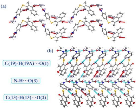 C-H···O and N-H···O Hydrogen bond interactions (a) along a axis and (b) along c axis in compound 5.