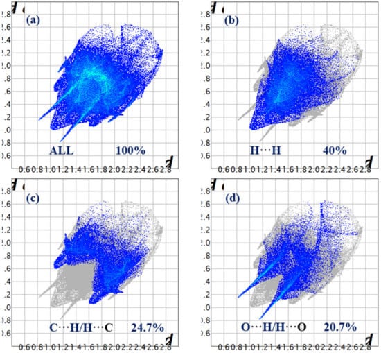 2D fingerplots for overall interactions (a) and significant interactions (b–d) in crystal packing of compound 5.