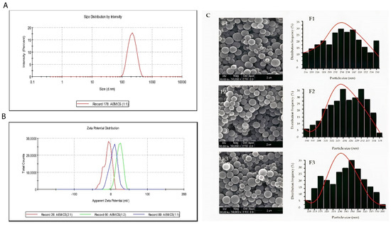 2.4. Particle Size Distribution, Zeta Potential and Morphology of AEM-CS Nanoparticles