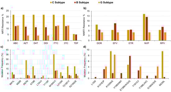 - Rhee, S.-Y.; Kantor, R.; Katzenstein, D.; Camacho, R.; Morris, L.; Sirivichayakul, S.; Jorgensen, L.; Brigido, L.; Schapiro, J.M.; Shafer, R.W. HIV-1 pol mutation frequency by subtype and treatment experience: Extension of the HIVseq program to seven non-B subtypes. AIDS 2006, 20, 643–651. [Google Scholar] [CrossRef]