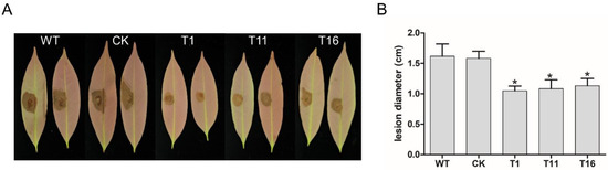 To determine the contribution of PlCZF1 on P. litchii virulence, we performed an inoculation assay. The WT and CK strains, as well as Δplczf1 mutants, were inoculated on litchi leaves. The diameter of lesions caused by the pathogen was measured at 48 h post-inoculation. Our results showed that the lesions caused by the Δplczf1 mutants were obviously smaller than those caused by wild type and CK strains (Figure 7A,B), suggesting that PlCZF1 plays an important role in P. litchii virulence.