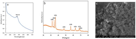 The specific absorbance peak for ZnONPs was reported between 320 and 380 nm []. Thus, the absorption maximum observed at 364 nm confirmed the existence of ZnONPs.