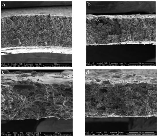 The microstructure of the films’ cross-sections was accessed using SEM (Figure 2).