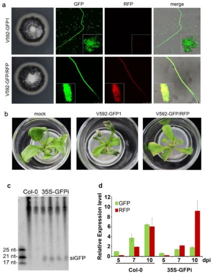 - Wang, M.; Weiberg, A.; Lin, F.M.; Thomma, B.P.H.J.; Huang, H.D.; Jin, H.L. Bidirectional cross-kingdom RNAi and fungal uptake of external RNAs confer plant protection. Nat. Plants 2016, 2, 16151. [Google Scholar] [CrossRef]