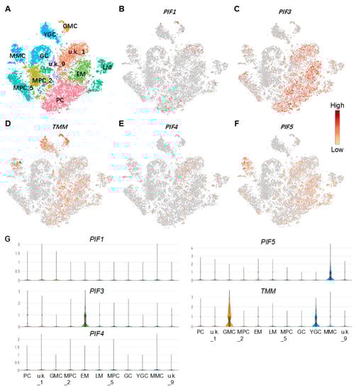 2.2. Detection of the Specific Expression of PIF1/3/4/5 in Epidermal Cells by scRNA-Seq