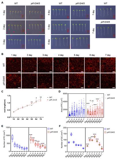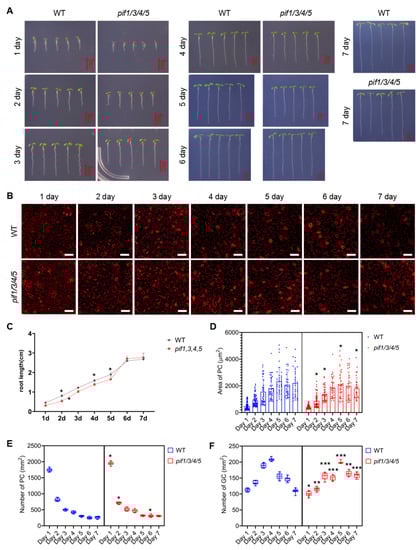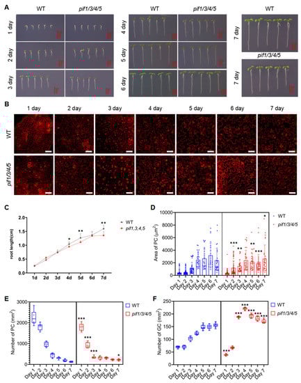 2.4. PIFs Are Involved in Regulating the Developmental Patterns of GC and PC