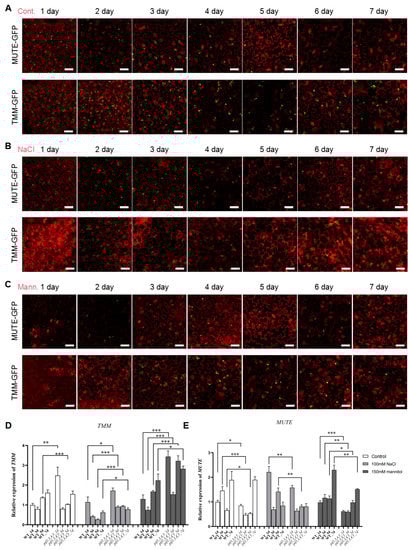 3.3. PIF4 and PIF5 Are Involved in Regulating the PC and GC Development by Mediating the Expression of MUTE and TMM under Drought and Salt Stress Conditions
