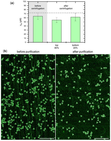 - Lin, C.; Perrault, S.D.; Kwak, M.; Graf, F.; Shih, W.M. Purification of DNA-origami nanostructures by rate-zonal centrifugation. Nucleic Acids Res. 2013, 41, e40. [Google Scholar] [CrossRef] [PubMed] [Green Version]
