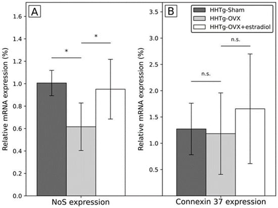 | Connexin 37 gene expression in abdominal aorta | 1.272 ± 0.490 | 1.183 ± 0.775 | 1.656 ± 1.043 | n.s. | n.s. | n.s. |
