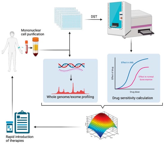 - Swords, R.T.; Azzam, D.; Al-Ali, H.; Lohse, I.; Volmar, C.H.; Watts, J.M.; Perez, A.; Rodriguez, A.; Vargas, F.; Elias, R.; et al. Ex-vivo sensitivity profiling to guide clinical decision making in acute myeloid leukemia: A pilot study. Leuk. Res. 2018, 64, 34–41. [Google Scholar] [CrossRef] [PubMed]