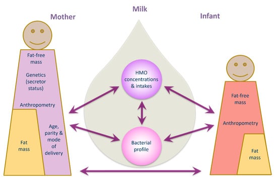 - Han, S.M.; Derraik, J.G.B.; Binia, A.; Sprenger, N.; Vickers, M.H.; Cutfield, W.S. Maternal and infant factors influencing human milk oligosaccharide composition: Beyond maternal genetics. J. Nutr. 2021, 151, 1383–1393. [Google Scholar] [CrossRef] [PubMed]
