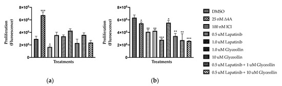2.3. Glyceollin and Lapatinib Treatment Inhibits Proliferation of Letrozole-Resistant Breast Cancer Cells