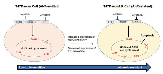 - Sabnis, G.J.; Macedo, L.F.; Goloubeva, O.; Schayowitz, A.; Brodie, A.M.H. Stopping treatment can reverse acquired resistance to letrozole. Cancer Res. 2008, 68, 4518–4524. [Google Scholar] [CrossRef]