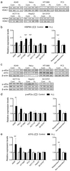 2.5. Molecular Hydrogen Induces Mitochondrial Unfolded Protein Response (mtUPR) in Hydrogen-Responsive Cells