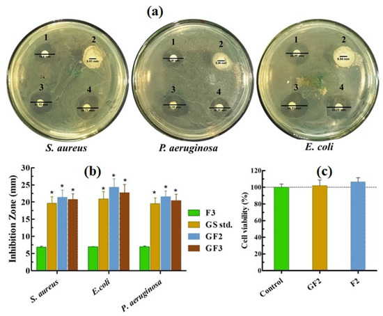 - Gemeinder, J.L.P.; Barros, N.R.d.; Pegorin, G.S.A.; Singulani, J.d.L.; Borges, F.A.; Arco, M.C.G.D.; Giannini, M.J.S.M.; Almeida, A.M.F.; Salvador, S.L.d.S.; Herculano, R.D. Gentamicin encapsulated within a biopolymer for the treatment of Staphylococcus aureus and Escherichia coli infected skin ulcers. J. Biomater. Sci. Polym. Ed. 2021, 32, 93–111. [Google Scholar] [CrossRef]