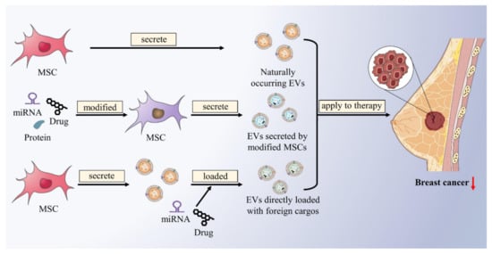 3. The Potential Therapeutic Strategies of Mesenchymal Stem Cell-Derived Extracellular Vesicles in Breast Cancer