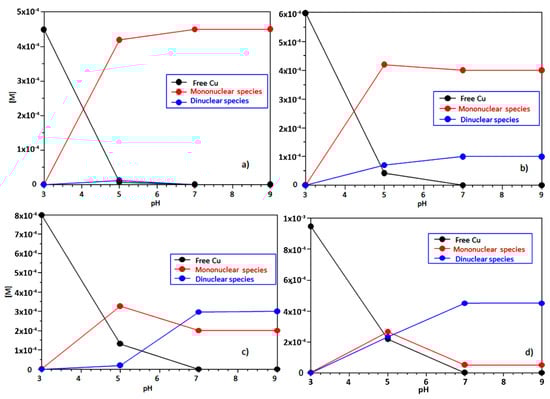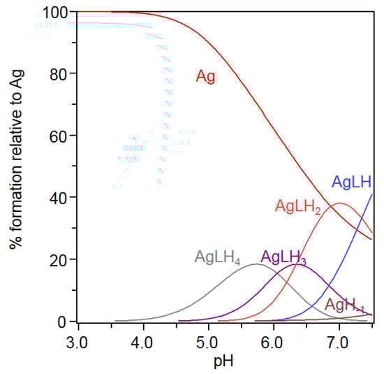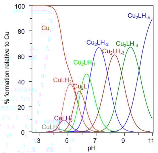 - Alderighi, L.; Gans, P.; Ienco, A.; Peters, D.; Sabatini, A.; Vacca, A. Hyperquad simulation and speciation (HySS): A utility program for the investigation of equilibria involving soluble and partially soluble species. Coord. Chem. Rev. 1999, 184, 311–318. [Google Scholar] [CrossRef]