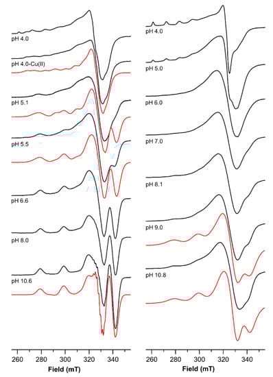 2.4. The Magnetic Parameters Values Obtained by Electro Spin Resonance (ESR) Measurements Indicate That the Two Binding Sites of Ctr1(1-14) Experience a Different Coordination Environment