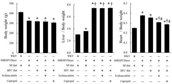 2.1. Effects of Nitrite and Captopril on the Body, Liver, and Heart Weights and Blood Pressure of the Rat NASH Model