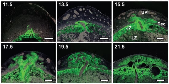 - Hu, D.; Cross, J.C. Development and function of trophoblast giant cells in the rodent placenta. Int. J. Dev. Biol. 2010, 54, 341–354. [Google Scholar] [CrossRef] [PubMed]