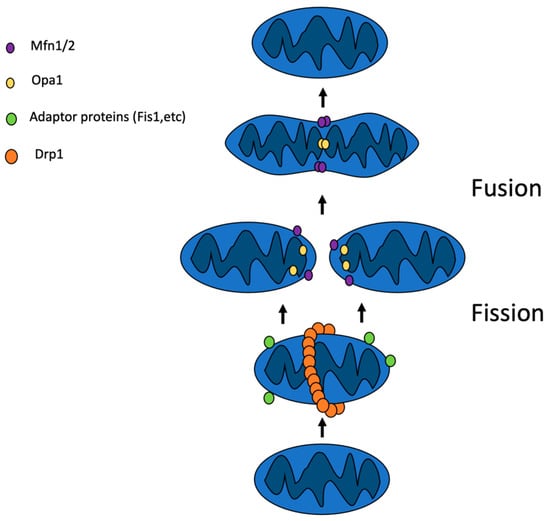 - Di Nottia, M.; Verrigni, D.; Torraco, A.; Rizza, T.; Bertini, E.; Carrozzo, R. Mitochondrial Dynamics: Molecular Mechanisms, Related Primary Mitochondrial Disorders and Therapeutic Approaches. Genes 2021, 12, 247. [Google Scholar] [CrossRef]