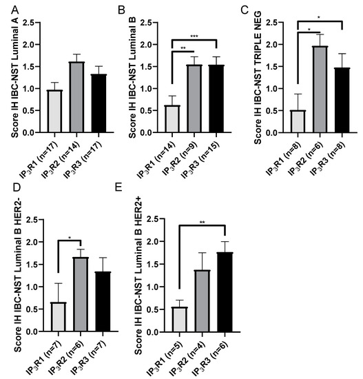 3.2. IP3Rs and Invasive Breast Carcinoma of No Special Type