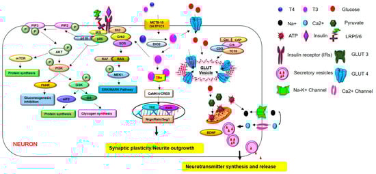 - Jahagirdar, V.; McNay, E.C. Thyroid hormone’s role in regulating brain glucose metabolism and potentially modulating hippocampal cognitive processes. Metab. Brain Dis. 2012, 27, 101–111. [Google Scholar] [CrossRef] [PubMed]