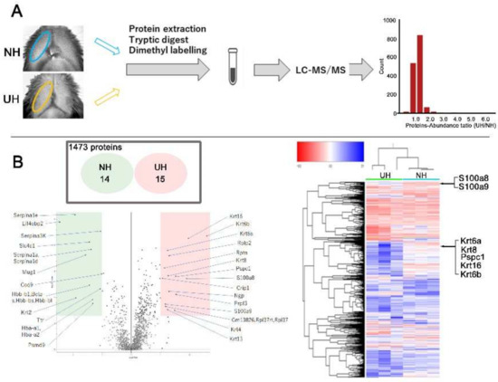 2.4. Quantitative Proteome Analysis of Differences in Expression between NH and UH Mice’s Lips