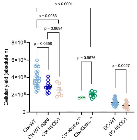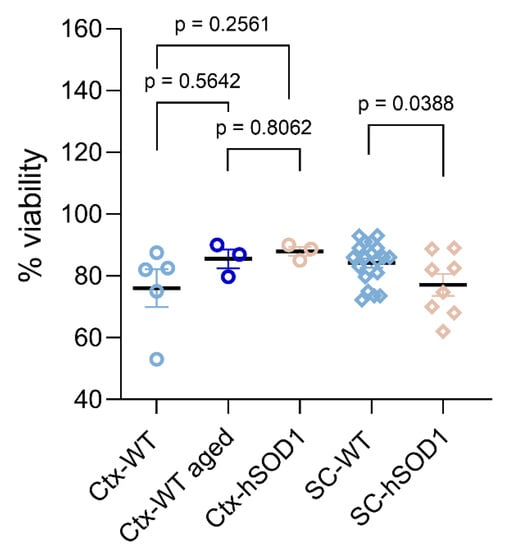 - Beaudet, M.J.; Yang, Q.; Cadau, S.; Blais, M.; Bellenfant, S.; Gros-Louis, F.; Berthod, F. High yield extraction of pure spinal motor neurons, astrocytes and microglia from single embryo and adult mouse spinal cord. Sci. Rep. 2015, 5, 16763. [Google Scholar] [CrossRef] [PubMed]