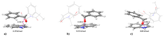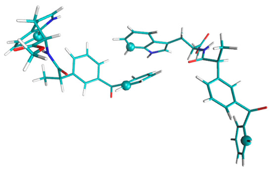 The results of quantum chemical calculations for dyad II have shown no significant differences in the distances between the nitrogen atom of Trp and the carbon atom (C=O) of KP (Figure 7). At that, (S,S)-diastereomer has the lowest energy, while (R,S)- and (S,S)- have the almost equal energy values.