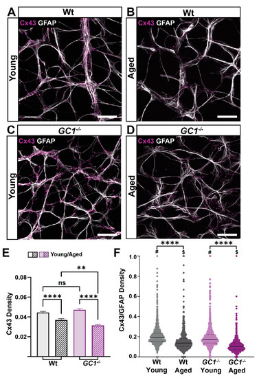 2.5. Astrocytic Cx43 Decreases with Age in the Retina