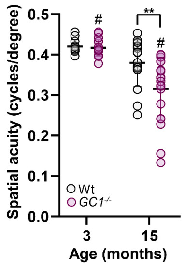 2.6. Visual Acuity Is Decreased with Age in GC1−/− Mice