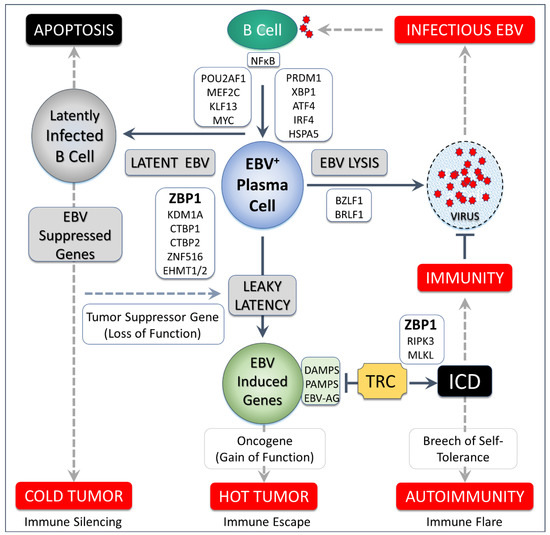 - Styles, C.T.; Bazot, Q.; Parker, G.A.; White, R.E.; Paschos, K.; Allday, M.J. EBV epigenetically suppresses the B cell-to-plasma cell differentiation pathway while establishing long-term latency. PLoS Biol. 2017, 15, e2001992. [Google Scholar] [CrossRef] [PubMed] [Green Version]