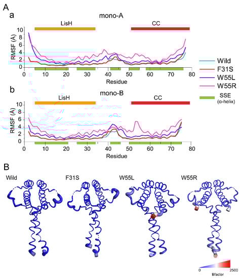 2.2.1. Overall Conformational Changes in LIS1 Variants