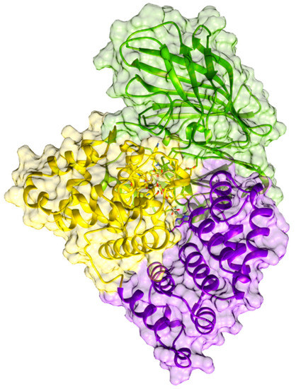 - Pettersen, E.F.; Goddard, T.D.; Huang, C.C.; Couch, G.S.; Greenblatt, D.M.; Meng, E.C.; Ferrin, T.E. UCSF Chimera? A Visualization System for Exploratory Research and Analysis. J. Comput. Chem. 2004, 25, 1605–1612. [Google Scholar] [CrossRef] [PubMed] [Green Version]