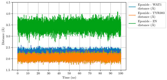Finally, an NVT equilibration step was performed before the NVT production step. Both share the same configuration: 300 K, no restraints and no SHAKE algorithm for hydrogens bonded to substrate’s epoxide. A total of 10 ns of equilibration were calculated followed by 150 ns of production, from which the last 100 ns have been selected for further analysis.